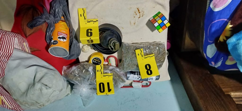 Con investigación de inteligencia se logró identificar el inmueble ubicado en calle Eduardo González de la Junta Auxiliar San Francisco Tlaxco, en el municipio de San Matías Tlalancaleca, Puebla, el cual fue cateado, obteniéndose como resultado el aseguramiento de los siguientes indicios: