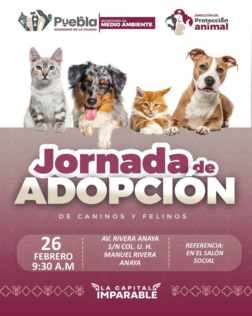 “Invitamos a las familias poblanas a sumarse a estos eventos. Adoptar es un acto de responsabilidad y compromiso social que contribuye a construir una ciudad más consciente y solidaria con los seres sintientes”, puntualizó.