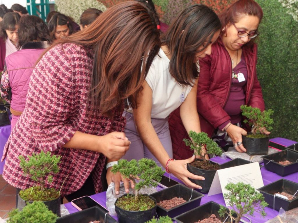 Las asistentes participaron en trasplante de bonsáis, representando el crecimiento, la sororidad y la construcción colectiva de un entorno más justo e igualitario.