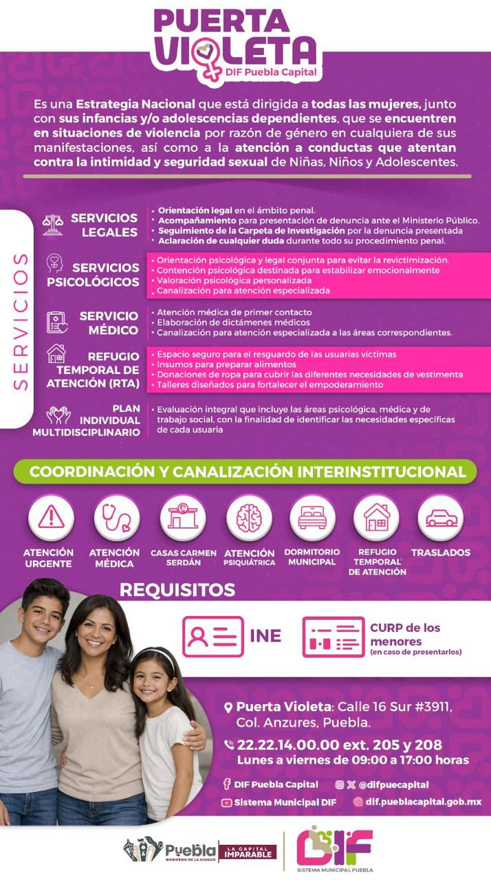 Fortalece DIF Puebla Capital atención a mujeres víctimas de violencia con el programa “Puerta Violeta”