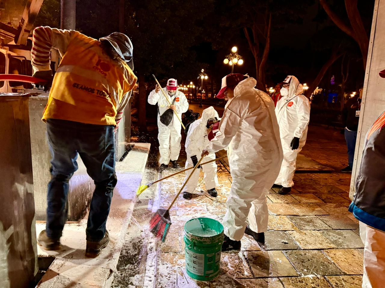 Realiza OOSL segunda intervención de limpieza en contenedores soterrados del Zócalo de Puebla
