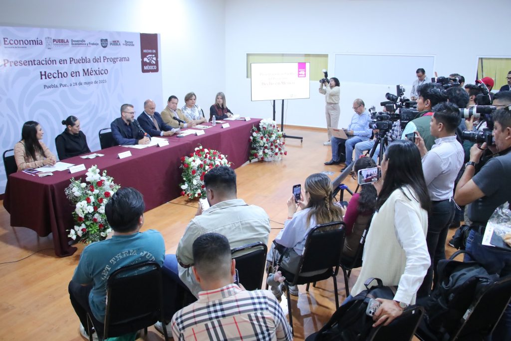 CIUDAD DE PUEBLA, Pue. – El gobierno de Alejandro Armenta, en coordinación con la representación de la Secretaría de Economía (SE) del Gobierno de México en Puebla, presentó este miércoles en rueda de prensa la campaña de registro al programa “Hecho en México”, una iniciativa que impulsa el consumo interno, fortalece la identidad y abre oportunidades en mercados internacionales. El evento fue encabezado por el coordinador regional Centro Golfo de México y Estatal de Puebla de la dependencia federal, Juan Carlos Natale López y el titular de Secretaría de Desarrollo Económico y Trabajo (SEDETRA), Víctor Gabriel Chedraui.